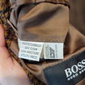 Hogo Boss | Vintage Wool Houndstooth 2 Button Blazer Jacket Brown Orange
