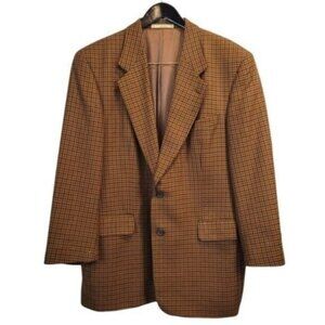 Hugo Boss | Vintage Wool Houndstooth 2 Button Blazer Jacket Brown Orange Tan