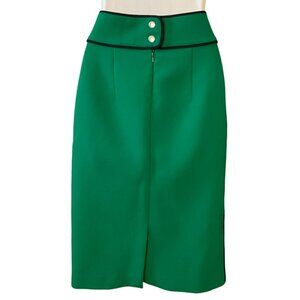 Hugo Boss Vosanna Green Pencil Skirt Navy Piping Details Pockets Back Zip Sz 2