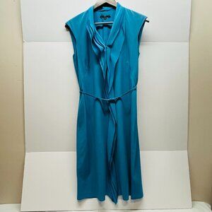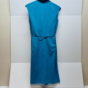 Hugo Boss Women's Damella Sleevless Silk Teal Blue Ruffle Belted Dress Size 4