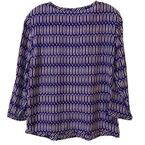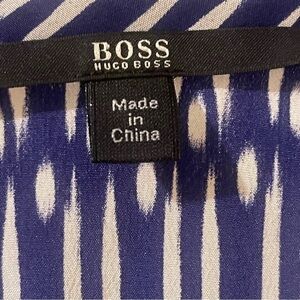 Hugo Boss Women’s Silk Navy & White Print Wide Neck L/S Tunic Blouse Size 8