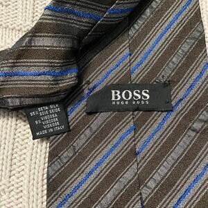 Hugo Boss brown striped silk tie. Previously loved and in excellent condition. Non smoking and pet free house.
