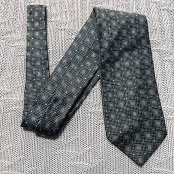 Hugo Boss silver gray geometric square Italian silk tie. Previously loved and in excellent used condition. Non smoking and pet free house.