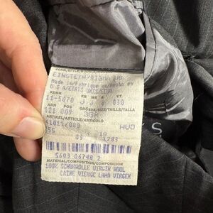 Hugo Boss Einstein Sigma Sport Coat, 100% virgin wool, Striped pattern, Long sleeve, buttoned cuffs, Three button front closure, Lined, Welt pockets, Vintage made in USAMens Size 38