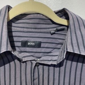 Hugo Boss Men's Stripes Button-Down Long Sleeves Dress Shirt Gray/ Black Size 32