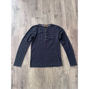 Hugo Boss Trix Slim Fit Navy Blue Long Sleeve Henley Shirt, Men's L