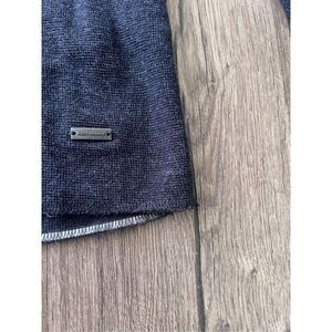 Boss Hugo Boss stretch cotton polo shirt in a Henley style with buttons down 1/4 of long sleeve shirt. In dark blue, excellent used condition as pictured. Slim fit style. Has a tight / small waffle texture.