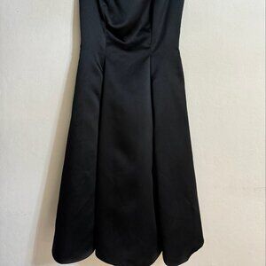 Product Description: This Hugo Buscati Collection dress is a timeless black sleeveless piece. Made from high-quality fabric, it features a fitted bodice and a flattering A-line silhouette. The dress has a subtle sheen, adding a touch of elegance, and a back zipper for easy wear. Perfect for formal events or an elegant evening out.