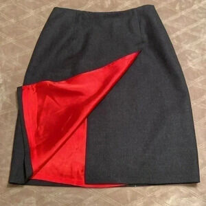 Hugo Buscati Collection Gray Wool Skirt, size 6. Like new condition. Fully lined with red satin feeling fabric. Has a side zipper and a hidden slit in the front. Gorgeous, classic style skirt. Closet basic. Quiet luxury.