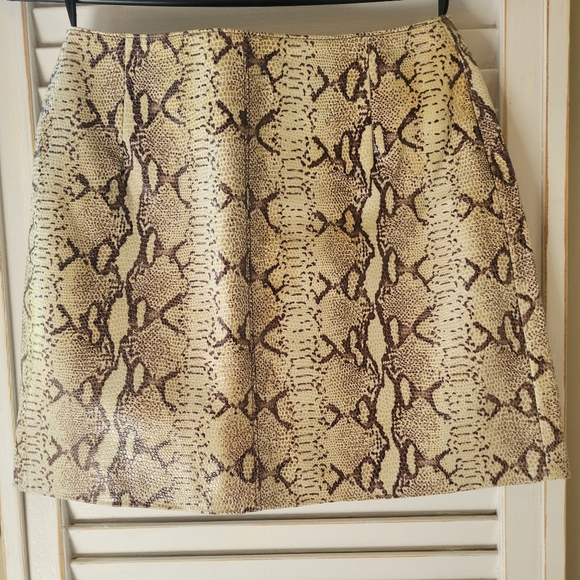 Elegant skirt with a python pattern. Features beige and brown tones. Ideal for a sophisticated style.