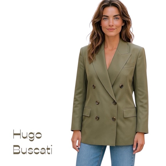 Vintage Hugo Bascati Tan Double Breasted Pure Silk Academia Neutral Blazer NWOT