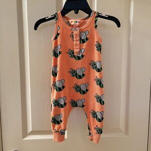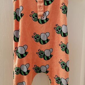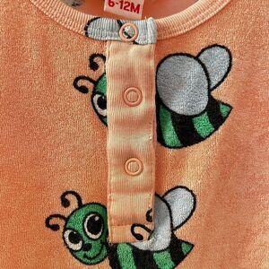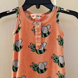 Hugo Loves Tiki Peach Bee Romper Jumpsuit Terry Cloth Size 6-12 Months