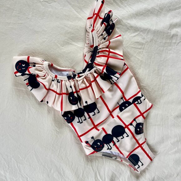 ADORABLE open backed, ruffle-cutie pie suit for a darling little girlie.