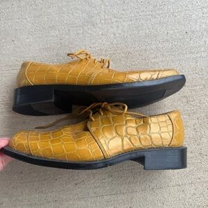 Hugo Vitelli Vintage Yellow Gold Oxford Style shoes Faux Croc 5