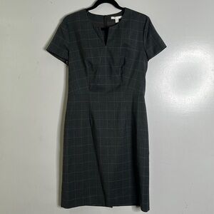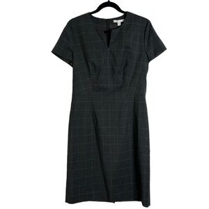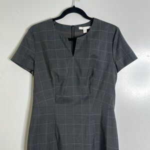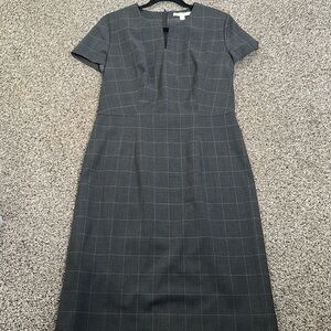 Hugo boss gray sheet dress size 8 great condition armpit to armpit is 19 inches the waist is 16 inches shoulder to hem 39 inches fully lined