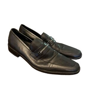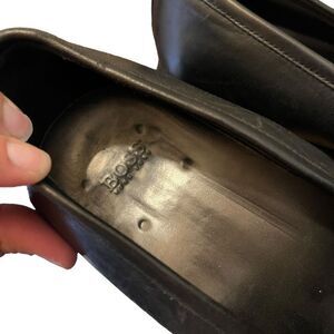 Hugo Boss Mens Slip On Loafers Leather Black Size 10 in good used condition some toe creases