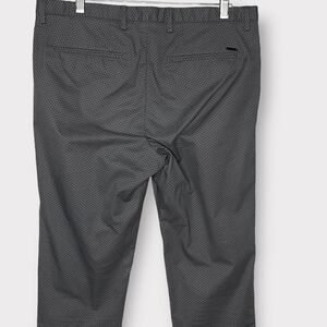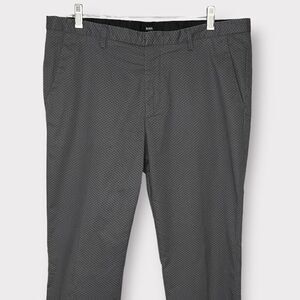Hugo Boss Men's Pants 34 R Gray Stretch Geometric Print Flat Front Casual Pants.