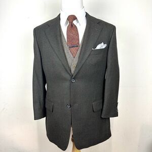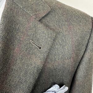 Hugo Boss Olive Windowpane Cashmere Blend Tizian Blazer 44L Read