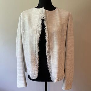 Hugo Boss Komina Tweed Fringe Collarless Jacket