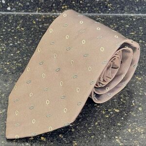 Excellent condition Hugo Boss 100% Silk Tie. Tan with cream and green eclipses. No stains or damage at all. From smoke free pet free home. See pics of actual item to confirm condition. Measurements are: