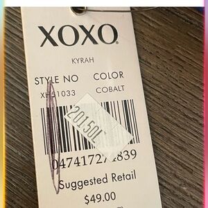 NWT Hugs & Kisses cobalt blue shoulder bag with stylish silver accents. One main compartment that has 2 side slip pockets and one inside zipper pocket. Magnetic closure.