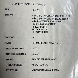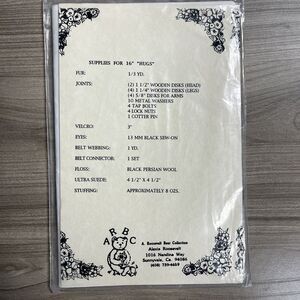 Hugs Plush Bear Sewing Pattern 16 Inch Toy Craft A Roosevelt Bear Company.
