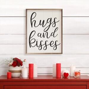 Hugs and Kisses Wooden Farmhouse Valentine's Day Wall Sign Decor