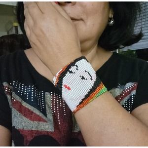 Huichol Beaded Lady Of Guadalupe Wide Cuff 6¼" Handcrafted In Mexico