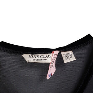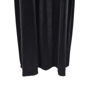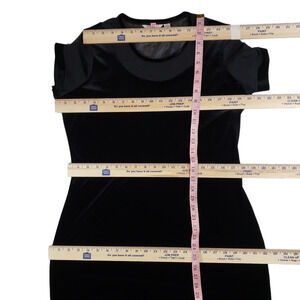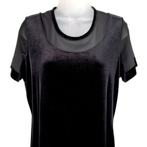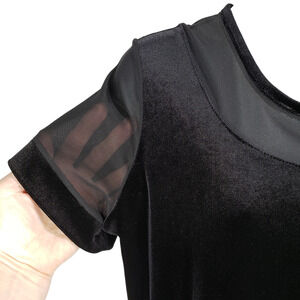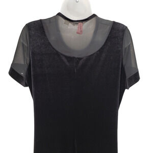 Huis Clos Velour Midi Dress 12 Women Black Short Sleeve Velvet Mesh Soft Vintage