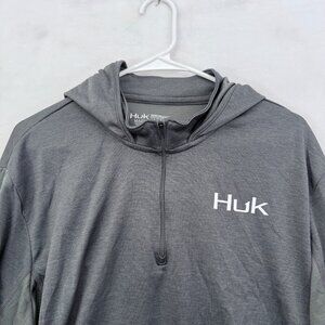 Huk 1/4 Zip Pullover Mens L Gray Hooded Performance Fishing Outdoor Lightweight