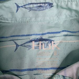 Huk Fish Print Vented Short Sleeve Button Down Shirt Green Size Small