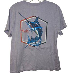 Huk Fishing Graphic T-shirt Purple V-Neck Short Sleeve SZ L
