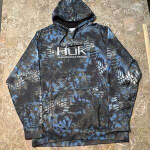 Huk Fishing Hoodie Mens XL Blue Kryptek Camo Fleece Long Sleeve
