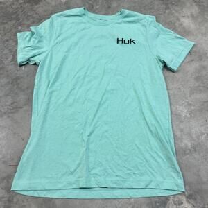 Huk Fishing Performance Crew Short Sleeve Shirt Men's Size Large Blue Green