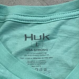 Huk Fishing Performance Crew Short Sleeve Shirt Men's Size Large Blue Green. Condition is Pre-owned. Shipped with USPS Ground Advantage.