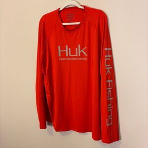 Excellent pre-owned condition Huk Fishing Reddish Orange Performance Long Sleeve Top Men's XXL
