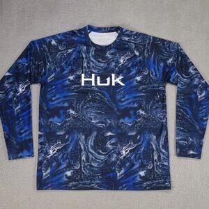 Huk Fishing Shirt Mens Large Blue Long Sleeve Performance Stretch