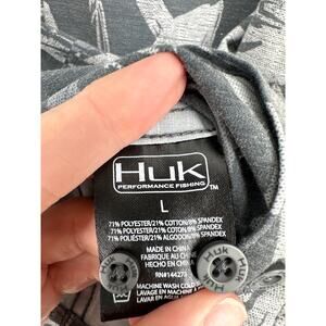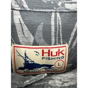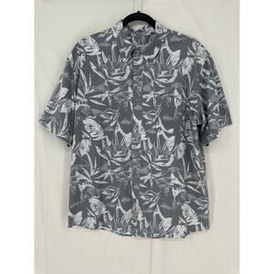 Huk Fishing Shirt Mens Large Gray Floral Performance Button Short Sleeve Stretch