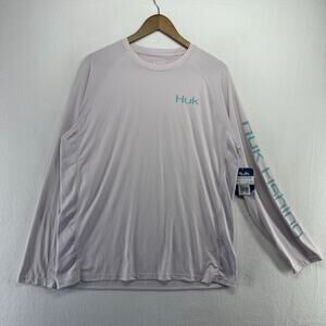 Huk Fishing Shirt Men's Large Gray Performance Tarpon Explosion Sun Surf NEW