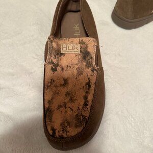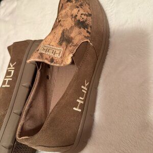 Size 10 mens Huk Camouflage/Chocolate slip-ons