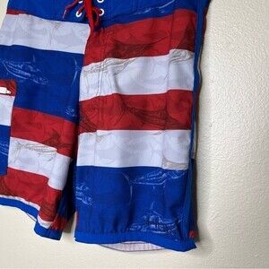 Huk Performance Fishing KC Scott Blue Marlin Board Shorts Flag Patriotic Men 30