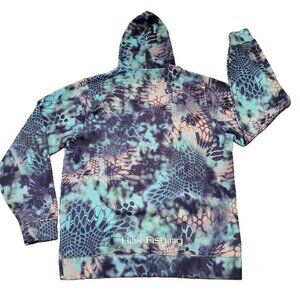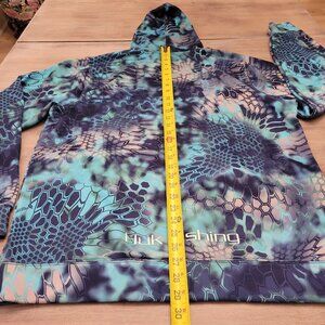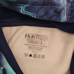 Huk Performance Fishing Lg Hoodie Shirt Blue Camo Long Sleeve UPF Sun Protection
