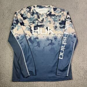 Huk Performance Fishing Shirt Mens Small Blue Icon X KC Refraction Camo Fade