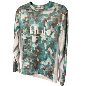 Huk Performance Mens Icon x Kc Refraction Camo Long Sleeves Fishing Shirt Sz S