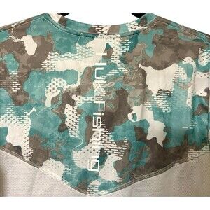 Huk Performance Mens Icon x Kc Refraction Camo Teal Gray Mesh White Long Sleeves Fishing Comfort Lightweight Shirt