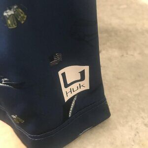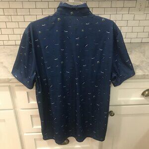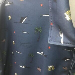Huk Polo Shirt Mens Large Blue Fishing Performance Allover Print Tropical Marlin