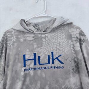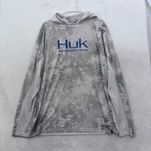 Huk Pullover Mens L Gray Yeti Hooded Performance Fishing Outdoor Lightweight