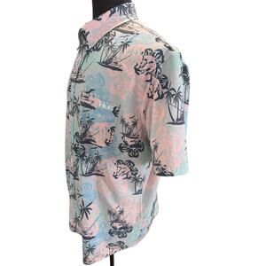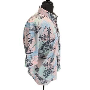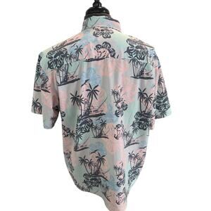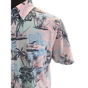 Huk Shirt Mens Large Fishing Boat Palm Trees Tropical Hawaiian Button Up