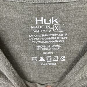 Huk Men's Fishing Performance Shirt in size XL features a long-sleeve design and lightweight fabric, ideal for outdoor activities. In green, this shirt offers moisture-wicking, breathable comfort for fishing or any active pursuit, with a handy pocket for added convenience.