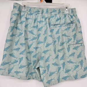 Huk Shorts Mens Large Swimming Trunks Lined Fishing Summer Green All Over Print